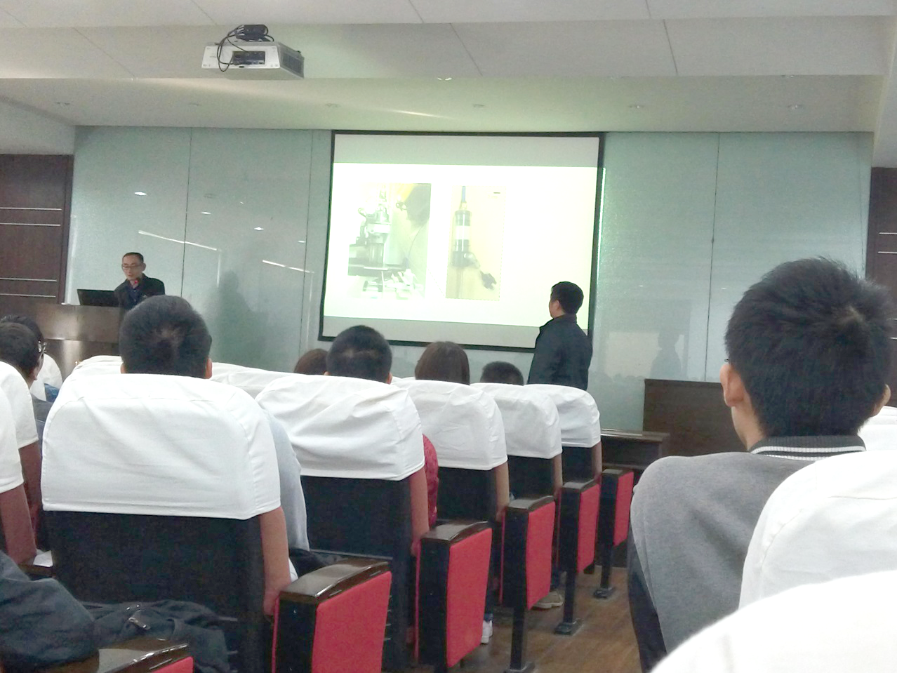 赵奇博士根据目前从事的两个主要研究方向进行了展示介绍。赵博士采用所属团队GEOMECHANICA自主研发的有限元和离散元结合的数值模拟方法(FDEM),结合声发射以及微地震,研究了岩石的损伤和破坏演化过程;并展示了其团队研制世界上第一套可以在在X射线层析成像下进行岩石物理实验的设备(ERDµ)。报告结束后,现场师生与赵博士展开了热烈讨论与交流,他衷心希望能和我校在岩石结构损伤方面开展更深入地合作与交流。