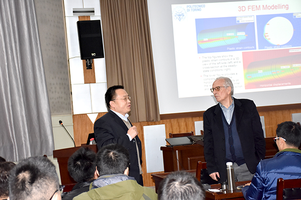 11月20日下午,应开云手机平台_开云(中国)焦玉勇院长、唐志成博士邀请,岩石力学与工程领域国际知名专家、国际岩石力学领域权威期刊《Rock Mechanics and Rock Engineering》主编、意大利都灵理工大学Giovanni Barla教授来校做主题为 “Monitoring and modelling of tunnels and caverns”的学术报告。焦玉勇院长主持了报告会,学院60余名师生聆听了报告。
