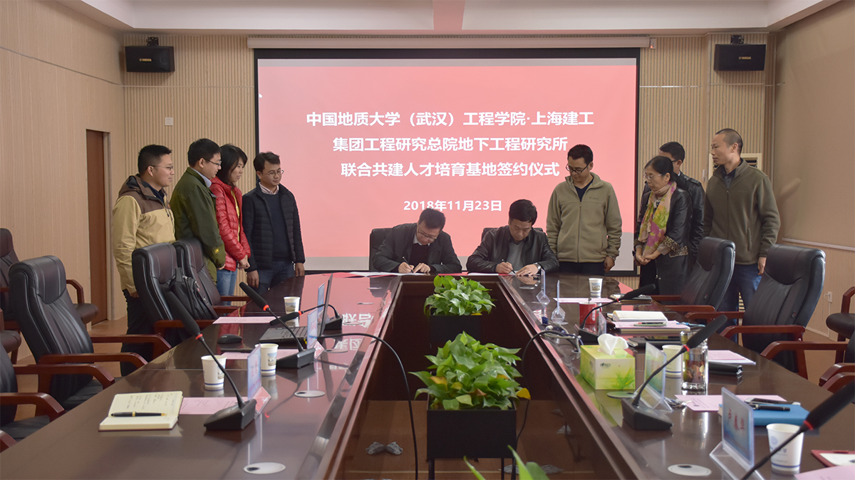 我院党委书记陈飞,副院长窦斌,副院长倪晓阳,院办主任胡燕,勘察与基础工程系主任卢春华,系教师代表,上海建工集团工程研究总院技术总监兼地下工程研究所所长、教高吴小建,地下工程研究所非开挖技术研究室主任张廉威,研究所办公室主任沈蓉,参加了此次签约仪式。