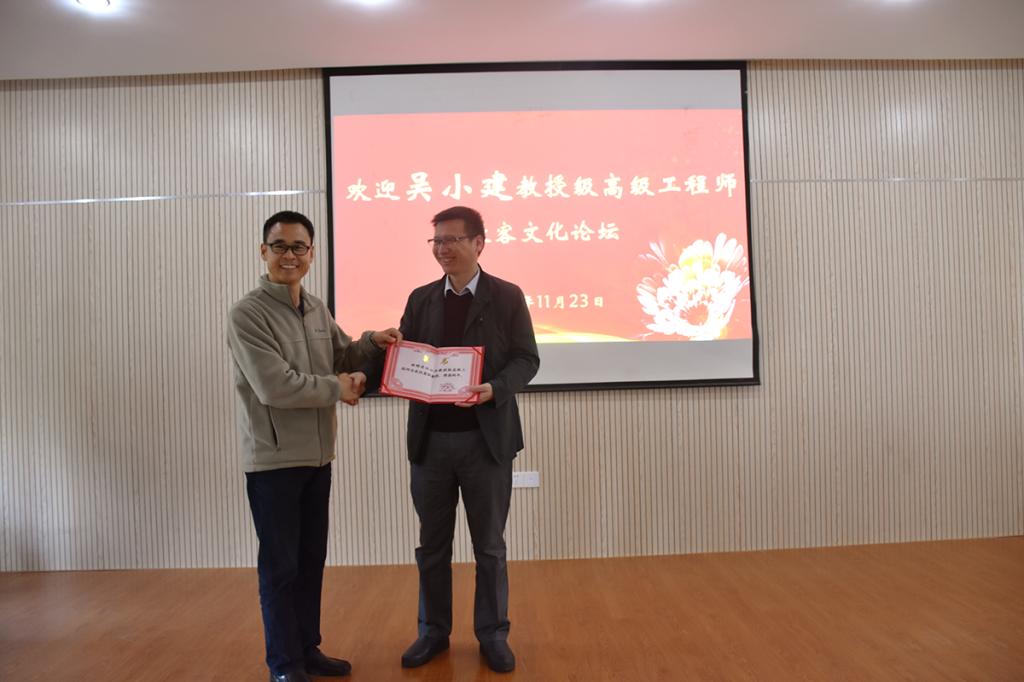 学术报告开始前,窦斌代表学院向吴小建教高颁发我校的兼职教授聘书,期待吴小建教高为我院相关学科的建设、高级人才的培养积极建言献策,为我院学生实践提供学习平台。