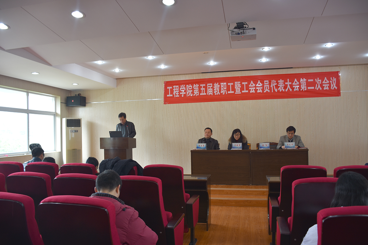 2019年1月4日上午,我院在工程楼418学术报告厅召开了第五届教代会暨第五届工代会第二次会议,校工会常务副主席于荣萍及学院第五届教代会与工代会代表与会。会议由院党委副书记江广长主持。
