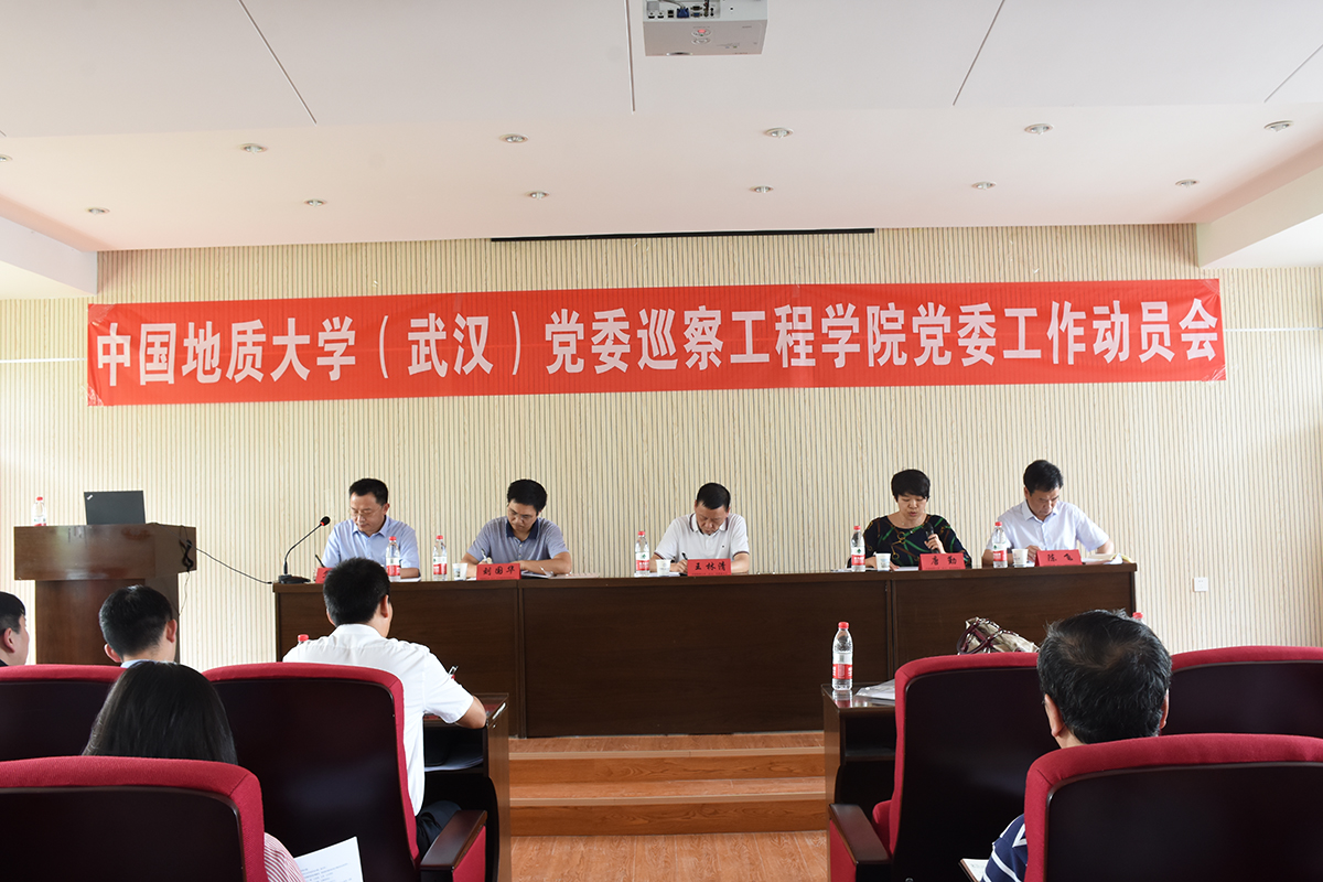 2019年5月24日下午2点半,中国地质大学(武汉)党委巡察开云手机平台_开云(中国)党委工作动员会在工程楼418学术报告厅召开。校党委副书记王林清、巡察工作组组长唐勤、副组长刘国华,巡察组成员何卫华、李鹏飞、路金阁、离退休教师代表、学院全体教职工等160余人参加了会议。院长焦玉勇主持会议。