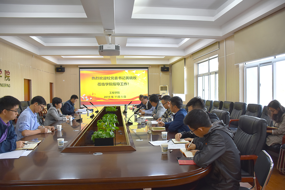 黄书记认真听取了大家的汇报,首先对学院的工作给予了充分的肯定,认为学院作为工科学院的代表,基础好、传统好,学院的发展既有特色也有沉淀;学院标志性的成果多,领导班子团结和谐,有凝聚力;她就调研过程中学院提到的在发展过程中面临的问题和困难作了解释,表示会将相关情况反映给学校有关部门;最后她希望学院能够抓住机遇,精准定位,在今后取得更好的成绩。