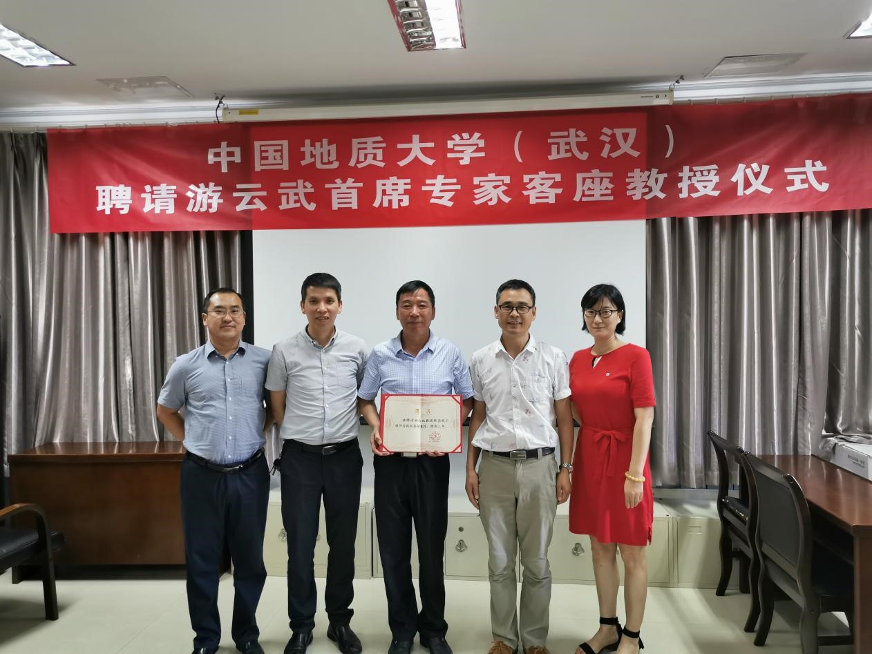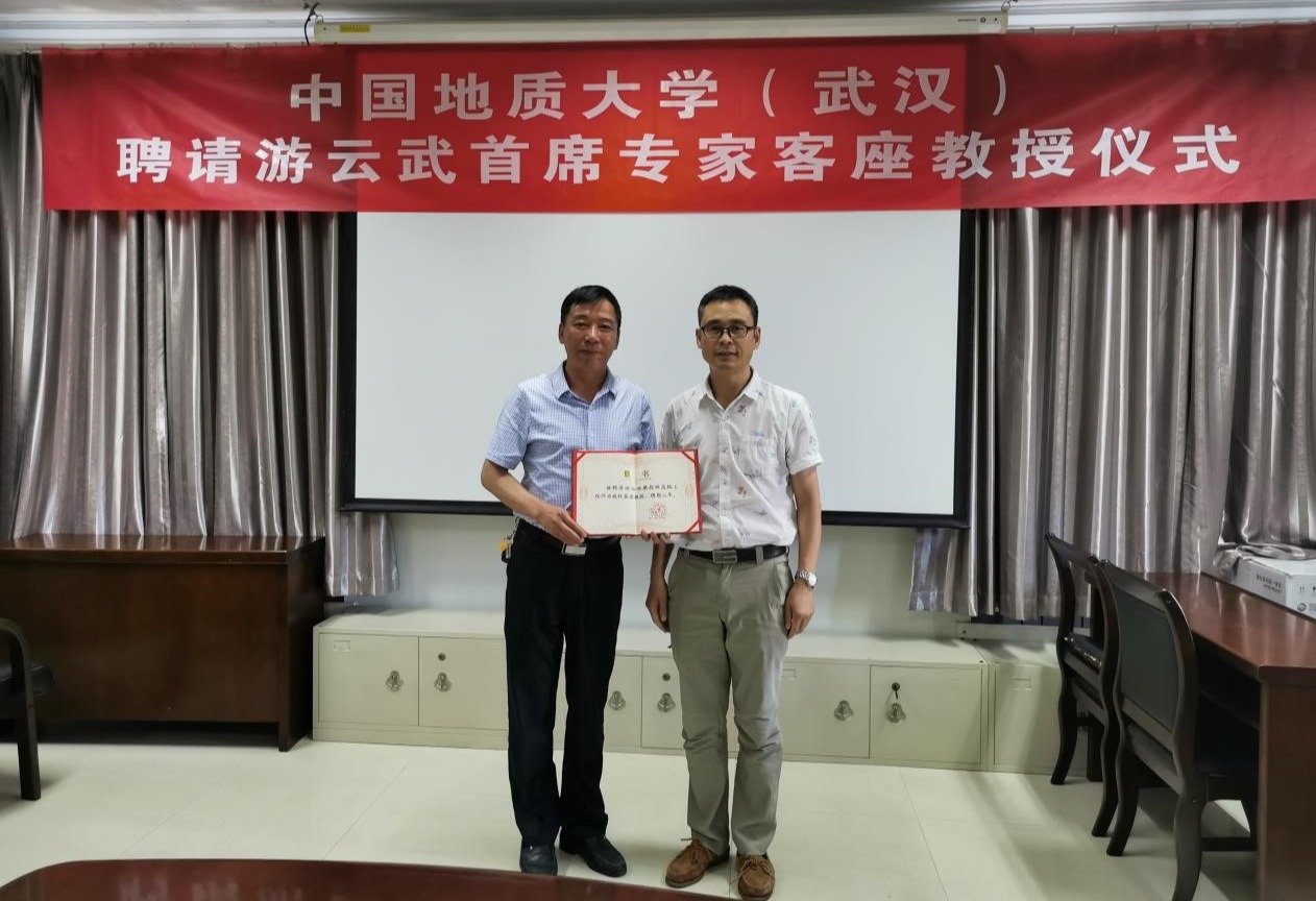 8月29日下午,中国地质大学(武汉)聘请游云武首席专家为客座教授的仪式在江汉油田工程有限公司会议室举行。江汉油田工程有限公司游云武首席专家、开云手机平台_开云(中国)副院长窦斌教授及双方相关人员出席仪式。仪式由窦斌副院长主持。