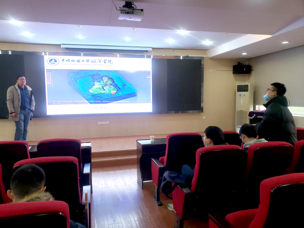 孙启良教授与董友扣副教授与参会师生就海底滑坡前沿进展和新技术新方法应用开展了深入交流与探讨。李长冬教授对报告会进行了总结发言。