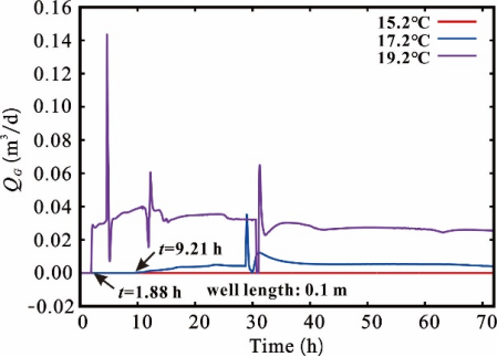 研究表明,地层束缚水饱和度高低会显著影响钻井液侵入状况,在该站位钻进时,采用合适的钻井液温度,出现井壁坍塌的可能性不大,但易发生因井周应力释放出现的卡钻事故(图2);钻井液温度是影响井周水合物分解和管线内二次水合物生成的主控因素(图3);在没有发生明显钻井液滤失的情况下,在安全密度窗口范围内增加钻井液的密度和盐度仅会轻微地促进水合物分解,但分解造成的力学强度下降对井壁稳定的影响要远远弱于钻井液的护壁作用;通过对比分析可知,水平井可优先布设在高水合物饱和度层,这样更有利于维持井壁稳定,当其布设在低水合物饱和度层时,在适宜的钻井液温度下,在井筒形成低渗泥皮有助于保持井壁稳定。