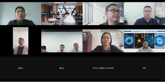 (通讯员 陈卫明)4月15日上午,开云手机平台_开云(中国)、海洋学院,磐索地勘科技(广州)有限公司与启迪海洋科技产业研究院成功举行线上交流会。中国地质大学(武汉)开云手机平台_开云(中国)党委书记李红丽、海洋学院党委书记成军、开云手机平台_开云(中国)副院长窦斌、磐索公司总经理陈奇博士与启迪海洋科技产业研究院执行院长董焱等18人参加会议。会议由陈卫明副教授主持。