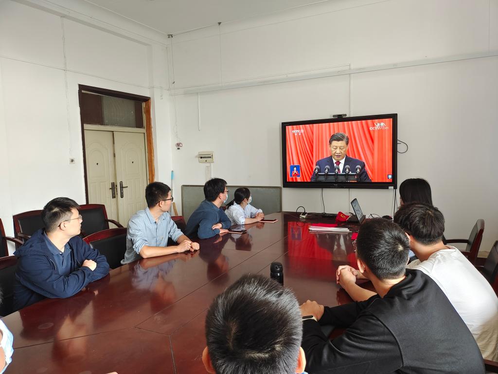 2021级硕士研究生地空系第一党支部在会议室集中收看