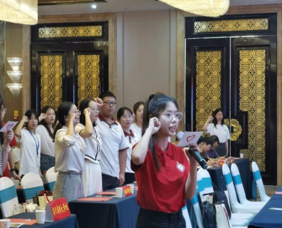 中国地质大学(武汉)明德风·爱心助学团黄珍妮、秦跃晁同学作为支教学生代表在会上进行了庄严宣誓,并接受由共青团广水市委员会颁发的聘书。