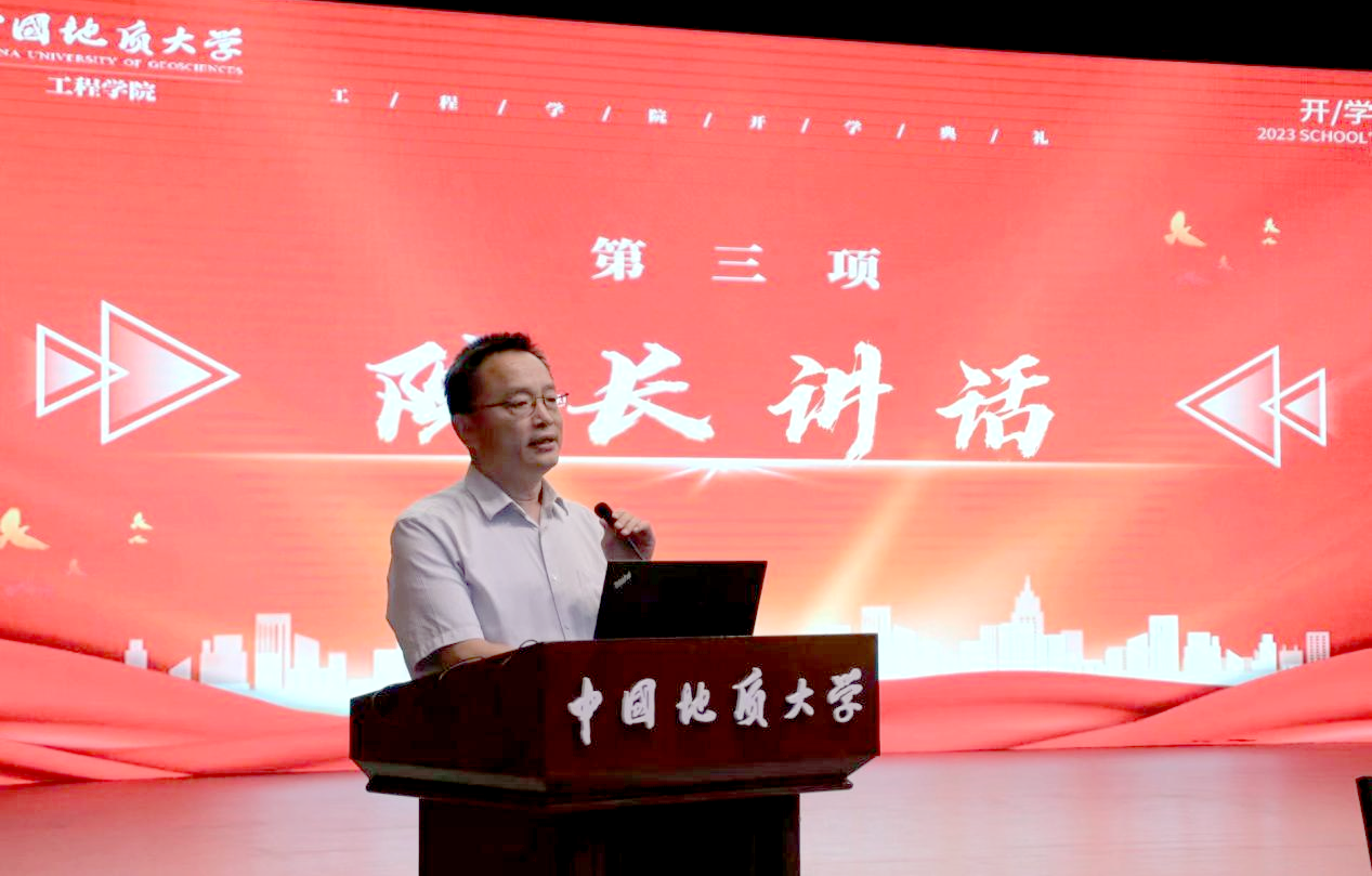 开云手机平台_开云(中国)院长焦玉勇教授讲话。他以“祝贺”“欢迎”“希望”寄语新生,祝贺860位新生加入国家工程行业,欢迎同学们来到中国地质大学开云手机平台_开云(中国),为学院发展注入新鲜血液、增添奋进力量。他系统全面的向大家介绍了学院的历史沿革、系室设置、师资力量、学科建设、科学研究、国际交流等基本情况,勉励全体新生用习近平新时代中国特色社会主义思想凝心铸魂,用“艰苦朴素,求真务实”的校训精神和“明理尚实、拓新砺行”的院训精神领航前进,跟随学校学院的发展步伐,用好学校学院的发展平台,毅然投身于国家工程建设行业当中,迎难而上、奋勇前行,不负历史、不复时代,为把学院建设成为地质工程与人居安全领域特色鲜明、享誉国际的一流研究型学院不懈努力!