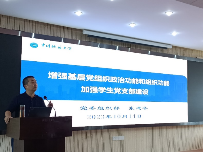 开云手机平台_开云(中国)党建辅导员王焱老师详细解读了《开云手机平台_开云(中国)学生党建提质争先工程实施纲要》和《中共中国地质大学(武汉)开云手机平台_开云(中国)委员会关于进一步推进学生党建提质争先工程的意见》两份文件内容。他强调,全体学生党员要认真执行文件,优化工作流程,注重强化党支部的政治功能和组织功能,持续推进学生党建提质争先工程,以高质量学生党建推动人才培养质量不断提升。具体做到:一是深入学习宣传贯彻习近平新时代中国特色社会主义思想和党的二十大精神,认真落实学校党委印发的《学习宣传贯彻落实党的二十大精神实施方案》,对标对表执行文件精神;二是推进党员学习教育常态化,强化党支部常态化集中教育和党员常态化自主学习,强化学生党员理论武装;三是要将学生党建与学科特色、人才培养、科技创新、社会服务以及院本文化建设等业务深度融合,加强样板党支部建设,打造特色品牌,提升党建工作核心竞争力。