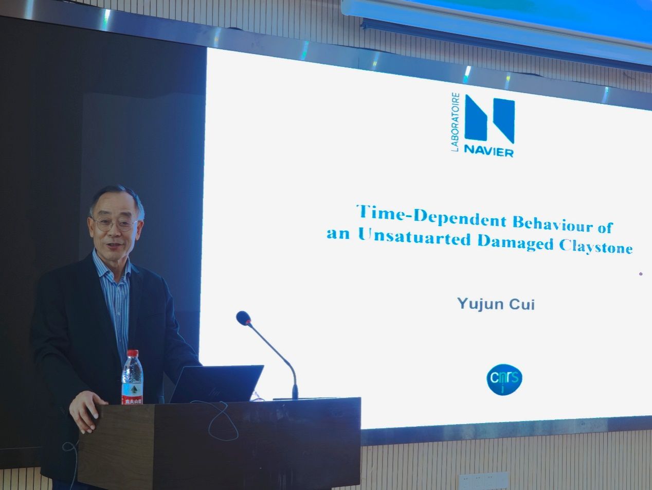 (通讯员 张峰 黄静)2023年10月31日上午,应开云手机平台_开云(中国)唐辉明教授和张峰特任教授的邀请,法国国立路桥大学Navier实验室岩土中心(CERMES)主任崔玉军教授来校访问,并作了题为“Time-dependent behaviour of unsaturated damaged claystone”的学术报告。唐辉明教授主持了报告会,李长冬教授、周佳庆特任教授、张峰特任教授、崔德山副教授、任兴伟副教授等100余名师生在现场参加了此次报告会。