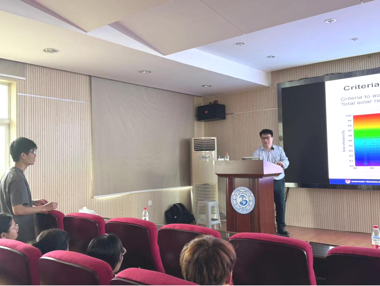 Wan Man Pun教授作了题为“Cool Surfaces for Urban Cooling in the Tropics”的学术报告, 报告以降低新加坡的城市温度为切入点,详细介绍了辐射冷却涂层的作用机理,并通过数值模拟和实验研究了在城市建筑物、马路等区域使用辐射冷却涂层作为热带城市冷却策略的有效性。最后,Wan Man Pun教授对未来制作新型辐射冷却材料的关键技术难题和研究方向做出了展望。