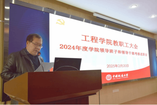 院长王亮清代表学院领导班子做2024年度述职述廉报告。学院领导班子成员李红丽、王亮清、窦斌、倪晓阳、章广成、高晓东分别进行个人述职述廉。与会师生对学院领导班子及领导干部进行民主测评。