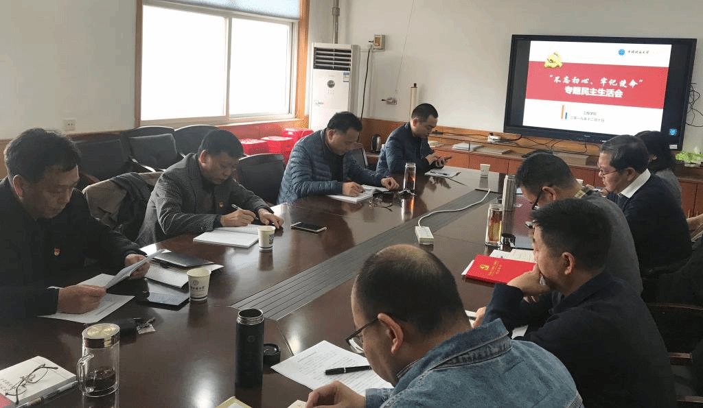 (编辑:杨冠青)按照《中共中国地质大学(武汉)委员会“不忘初心、牢记使命”主题教育工作方案》和《中共中国地质大学(武汉)委员会“不忘初心、牢记使命”专题民主生活会工作方案》要求,学院处级领导于2019年12月10日下午在工程楼312会议室召开了2019年度学院处级领导干部专题民主生活会,学校党委副书记王林清和学校主题教育指导组徐伟参加了会议,会议由学院党委书记陈飞主持。