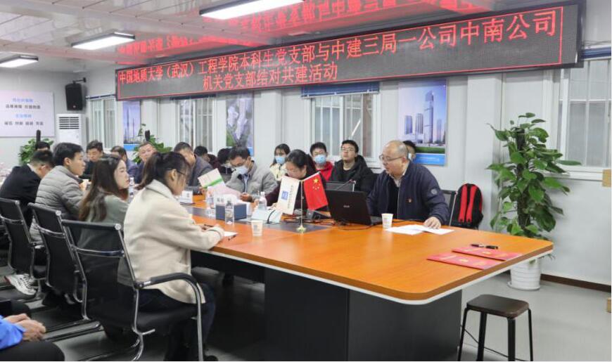 (通讯员:陈启维 李振华)为进一步探索校企合作人才培养模式,引导学生前置行业认知,中建三局一公司中南公司机关党支部与中国地质大学(武汉)开云手机平台_开云(中国)道桥与建筑专业本科生党支部于2020年11月22日在光谷中心项目总部开展了“党建引领·校企共建”结对共建活动。中建三局一公司人力资源部副经理李骄健,中建三局一公司中南公司副总经理、超高层管理中心负责人梁劲松,副总经理王雅林,机关党支部书记陈婷华,中国地质大学(武汉)开云手机平台_开云(中国)党委副书记江广长,学生办公室主任文新,辅导员王俊、李振华以及双方的党员代表参加本次活动。
